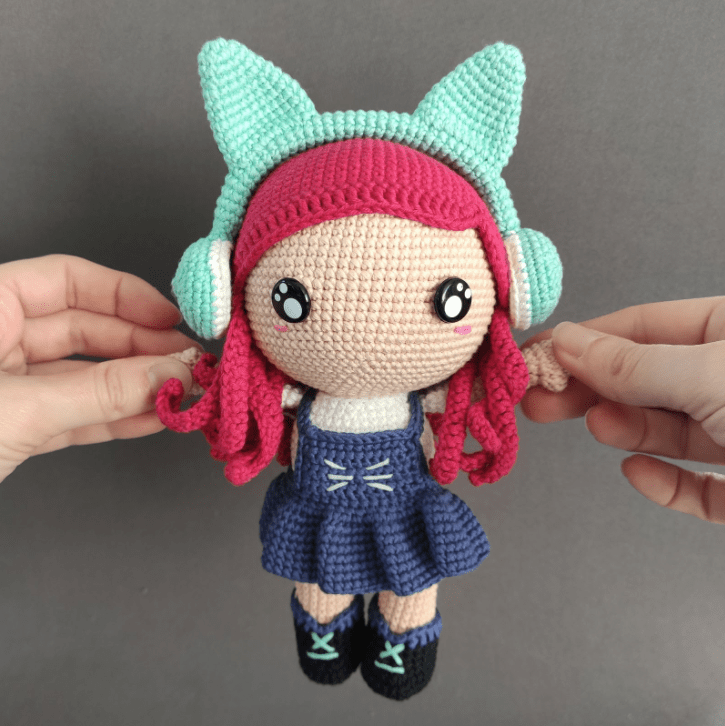 The Neko Kawaii Doll of the pattern is crocheted with cotton DMC Natura and a hook 2 mm. You can also make it with wool and a bigger or smaller crochet hook (suitable for wool chooses).